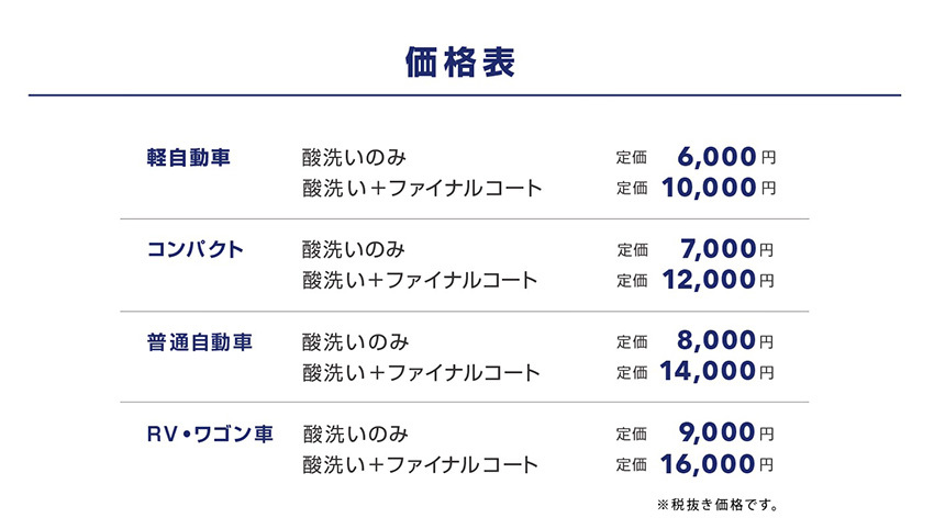 ※凹状ウロコ跡(塗装を侵食した水跡)は除去出来ません。またコーティングの種類によっては お受け出来ない場合がございます。現車テストをしてからの作業受付になります。